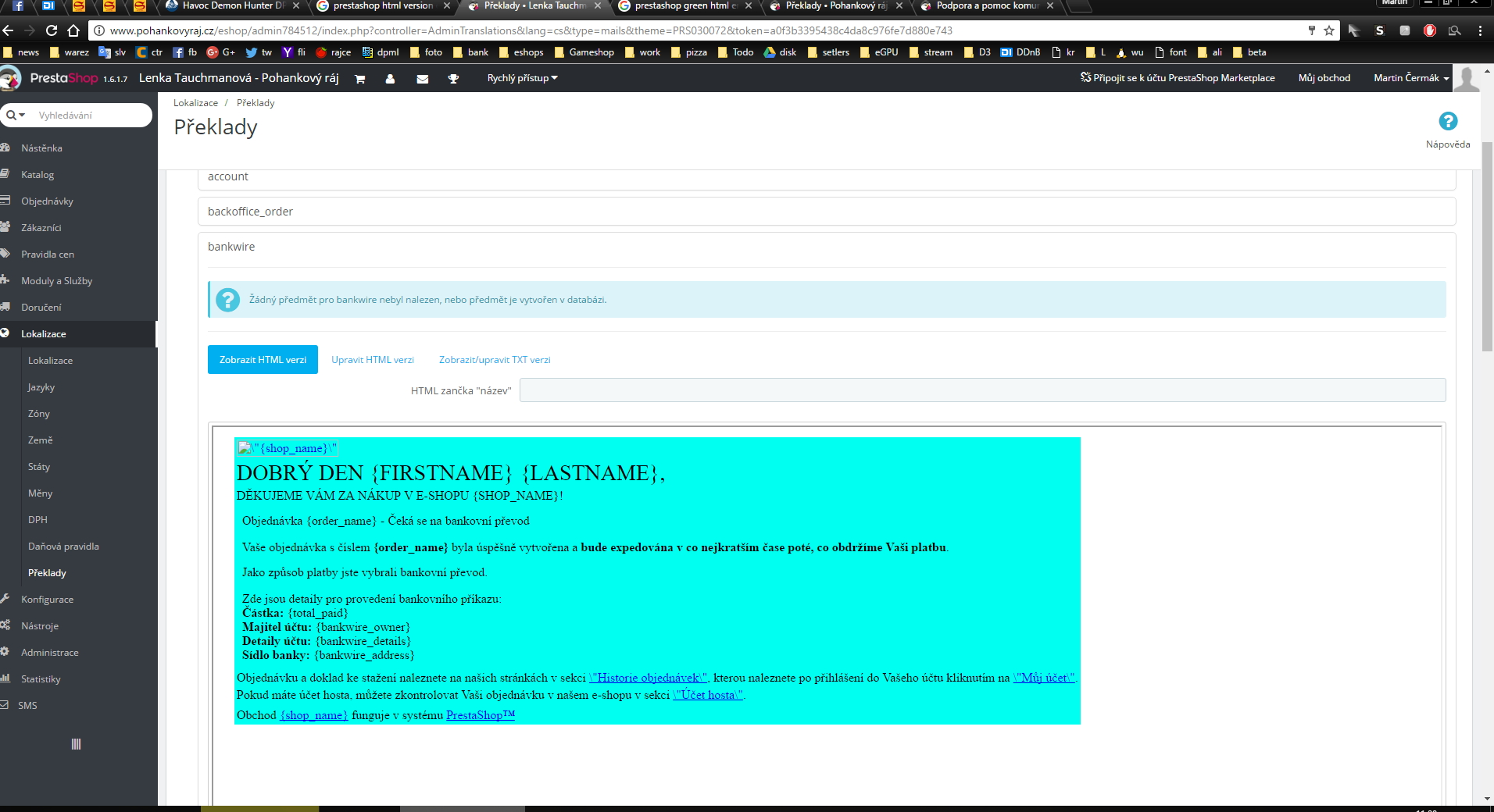w1ckcze Posted November 12, 2016 Share Posted November 12, 2016 Dobry den, spravuji eshop www.pohankovyraj.cz/eshop a jiz od zacatku mi odchazi nekorektne emaily. Jak na zakladni sablone tak na zakoupene zde (Mega Multipurpose Store).Emaily vypadaji takto: Co jsem hledal tak jsem nasel jen jednu zminku a to zde. Kde ma dotycny stejny problem, zjistil jsem ze mi php bezelo na verzi 5.4, pozadal jsem tedy hosting o update na 5.7 kde by zminene magic quotes nemely byt. Nicmene emaily se chovaji stale takto. Pokud prepnu do "upravit html verzi" naznak jak ma email vypadat tam je ale vliv na konecny email to nema. Prosim o radu, dekuji Link to comment Share on other sites More sharing options...