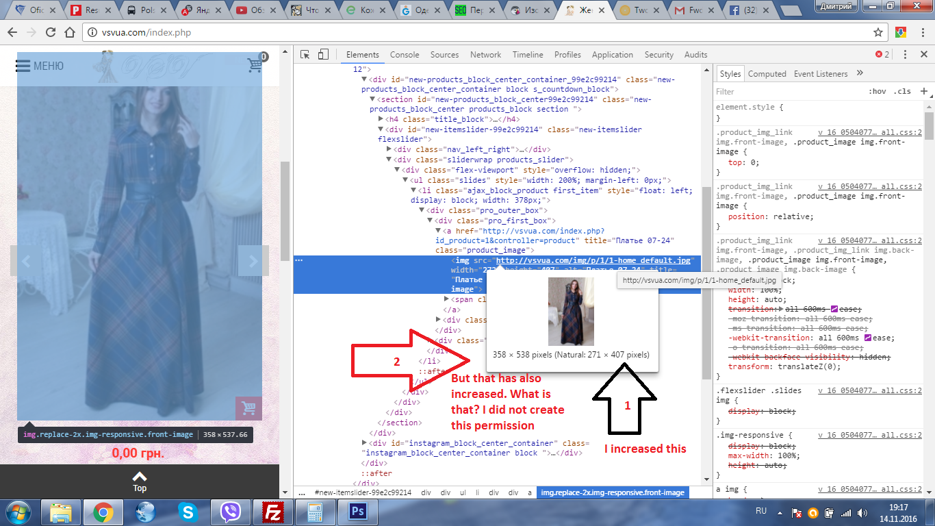 Mahadev Posted November 14, 2016 Share Posted November 14, 2016 Здравствуйте. Помогите, пожалуйста. Подскажите. Я уже 3й день ковыряюсь, решения не нашел. Суть проблемы: При добавлении товаров Преста или шаблон ресайзит фото для разных разрешений - home-default, large-default и так далее. По непонятной причине картинки размыты, четко отображается только самый большой формат 1500х1000 пкс. Но по логике большой ресайзится до малого, так почему же происходит размытие? На скриншоте показан исходный код, и там видно что размер, заданный в бек офисе не совпадает с реальным. Получается, что ресайзится по заданному, а на сайте отображается увеличенная картинка. Подскажите, почему такое может быть и где вообще копать. Заранее благодарен за помощь. [Версия Престашоп 1.6.1.9, шаблон покупной] Link to comment Share on other sites More sharing options...