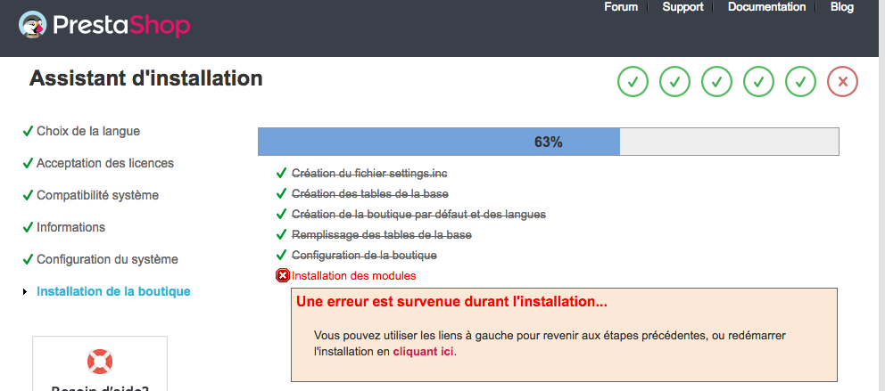 Une erreur est survenue durant l'installation...