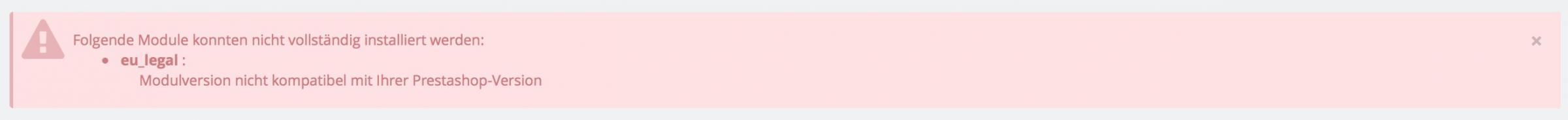 Lausli Posted November 16, 2016 Share Posted November 16, 2016 (edited) ... Compatible with with Prestashop from 1.6.0.7 https://www.google.de/search?q=EU+Legal+Modul&gws_rd=cr,ssl&ei=nl0sWOSsIMWya8ysq5gD der 2. Eintrag sieht Verdächtig aus Ich befürchte EU Legal gibt es nicht für 1.6.1.9. Versuch es mal mit dem Modul für Europäische Rechtssicherheit direkt von Prestashop.... https://github.com/PrestaShop/advancedeucompliance Edited November 16, 2016 by Lausli (see edit history) Link to comment Share on other sites More sharing options...