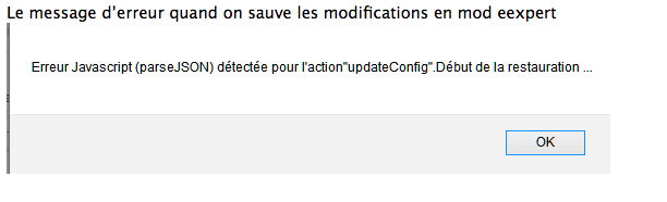 pretaboule Posted November 19, 2016 Author Share Posted November 19, 2016 (edited) bonjour merci pour votre aide mais j'ai essayé deux fois la suppression des fichiers XML comme vous me l'avez conseillé, avec vidage des caches, mais rien n’a évolué. On a toujours les messages d’erreur JSON lorsqu’on veut modifier les paramètres en mode expert, et toujours le message disant que c’est une version du futur ! Je continue de chercher... mais pour le moment je ne trouve pas quelqu'un qui ai eu le meme problème .. Edited November 19, 2016 by pretaboule (see edit history) Link to comment Share on other sites More sharing options...