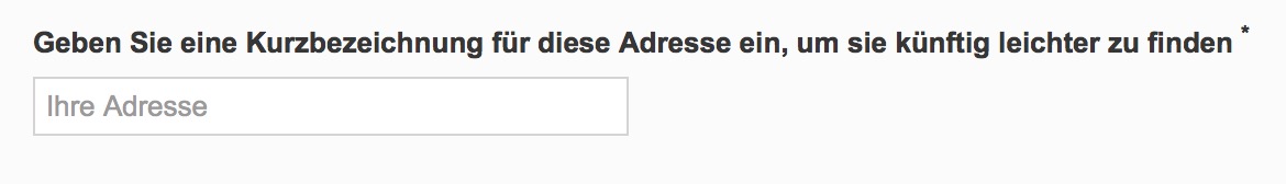 Wolke7 Posted November 18, 2016 Author Share Posted November 18, 2016 Ich denke, dass ist keine geeignete Lösung ... Hat eine Kunde mehrere Adressen im Shop hinterlegt und soll bspw. beim Versand eine davon auswählen, wird bei der Auswahl angezeigt was in diesem Feld eingetragen wurde. Erstens bedeutet das, dass die PLZ da drin sinnfrei ist und zweitens kann man so auch keine zweite Adresse mit derselben PLZ eintragen. Hmm, ich möchte einfach dass ein Kunde so wenig wie möglich hier eingeben muss. Da dieser ja schon oben sein ganze Anschrift eingetragen hat. Was wäre denn dein Tipp was man hier als Sinnvoll hinterlegen könnte. Aber die beiden Felder sind schon die richtigen oder? Link to comment Share on other sites More sharing options...