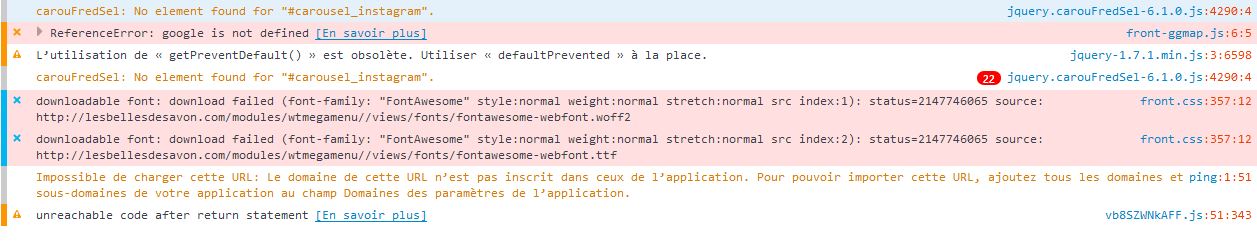 Arnaud Drieux Posted March 2, 2018 Author Share Posted March 2, 2018 Bonjour. Ceci est la capture du back office, il me faudrait la capture de la console (voir ma pj). Vous pourrez y accéder en appuyant sur f12. Link to comment Share on other sites More sharing options...