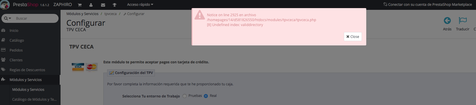 Ayuda con errores TPV Ceca 1.3.0 - Prestashop 1.6.1.2