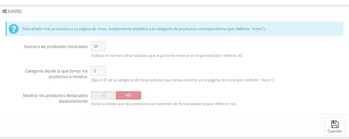 ventura Posted November 19, 2016 Share Posted November 19, 2016 Desde las opciones de configuracion del modulo homefeatured (Productos Destacados), tienes que tener configurada esta opcion asi Mostrar los productos destacados aleatoriamente --> NO Link to comment Share on other sites More sharing options...