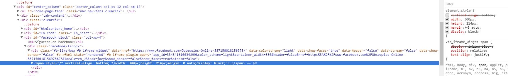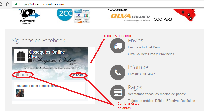 Jonath9595 Posted November 19, 2016 Share Posted November 19, 2016 Hola a todos, este es mi primer post, necesito su ayuda, ando tratando de cambiar el tamaño del bloque "Síguenos en Facebook" porque me aparece con bordes blancos, como si la página no encajara (pueden verlo en las fotos), ya probé modificando el css, y también si alguien sabe como cambiar el botón que dice "Liked" y "Share" por "Me Gusta" y "Compartir" respectivamente. espero su pronta respuesta. Me encuentro usando prestashop 1.6.1.7 con el tema por defecto. Link to comment Share on other sites More sharing options...