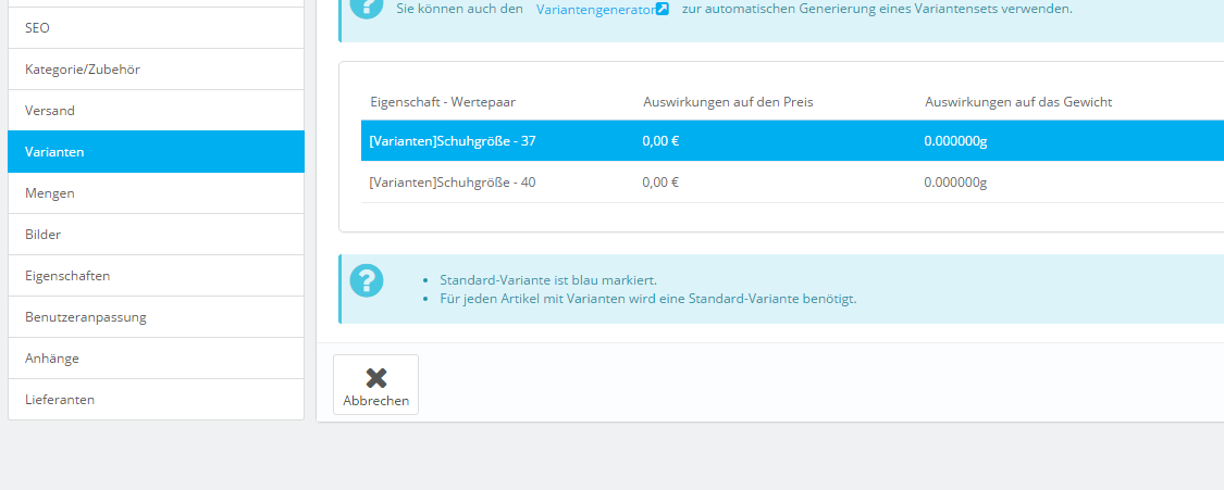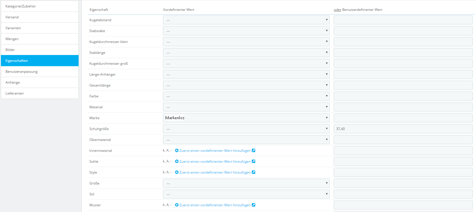 Gohan Posted November 21, 2016 Share Posted November 21, 2016 (edited) Ich beziehe mich mal auf den Topic http://https://www.prestashop.com/forums/topic/567607-produktmerkmale-und-attribute-gruppen/ Ich würde gern mein Unverständnis mit einem Handfesten Beispiel belegen. Ich nutze wie einige hier das eBay Modul. Ich habe nach der Synchronisierung dies Fehler: In den Variantenmerkmalen oder im Variantenmerkmalsatz fehlt eine Bezeichnung.Die für Bilder verwendete variantenspezifische Bezeichnung "[Varianten]Schuhgröße" ist im variantenspezifischen Satz nicht vorhanden."[Varianten]Schuhgröße"Produkt (e) :- Artikel 1 - SchuheTopWalk* *Beispiel Artikel > Ich nutze Prestashop 1.6.1.9> Das eBay Modul von Lausi 1.15.1 So, nun habe ich bei diesem Artikel Schuhgröße 37,40 So, nun habe ich mit der neuen Übersetzung: Katalog > Artikelvarianten [Varianten]Schuhgröße 36 37 38 39 40 41 Der Artikel hat jetzt als Eigenschaften Schuhgröße: 37,40 Bei den Varianten habe ich dann das: Eigenschaft Wertepaar: [Varianten]Schuhgröße - 37 [Varianten]Schuhgröße - 40 So, bis hier her: Ist das richtig? Habe ich das System falsch verstanden? Im eBay Modul habe ich dann diese Einstellung: Einstellungen > 3. Artikelmerkmale (Jetzt gibt es also Artikel Merkmale, Attribute, Varianten und Eigenschaften :S) Jetzt weiß ich nicht richtig ob das jetzt richtig habe oder eben nicht. Nachtrag: Ich glaube, dass es hier mit dem eBay Modul ein Logikproblem gibt. Ich kann im eBay Modul sagen: Kategorie > XYZ > ABC > Größe > Auswahl zwischen Attributen und Eigenschaften also in meinem Beispiel zwischen "Größe" und "[Varianten] Größe" Kategorie > XYZ > ABC > Marke > Marke (Als Eigenschaft z.B., kann aber auch eine Variante sein.) So. Damit Weiß das Modul jetzt, bei welcher Kategorie es was nehmen soll. ABER: Habe ich in einer Kategorie Varianten UND nicht Varianten Artikel klappt das nicht mehr. Habe ich z.B. in der Kategorie Schuhe im Modul der Eigenschaft "Schuhgröße" zugewiesen > "[Varianten] Schuhgröße" klappt das nur dann, wenn ich auch Varianten mit einer Zuweisung "[Varianten] Schuhgröße" habe. Sobald in der Kategorie dann nämlich keine Variante vorhanden ist, bekommt man den Fehler. Der Grund ist ja auch Simpel, Artikel ohne Varianten ahbe "Schuhgröße" nicht in "[Varianten] Schuhgröße" sondern in der Eigenschaft und da bei Schuhgröße eben. Mein Englisch ist leider nicht gut genug um das vernünftig 202 zu melden. Ich weiß ja, dass das Modul offiziell nicht mehr für Deutschland verfügbar ist aber das Problem sollte eig. auch andere Länder die unterstützt werden auftreten. Edited November 21, 2016 by eleazar abgetrennt vom ursprünglichen Topic (see edit history) Link to comment Share on other sites More sharing options...