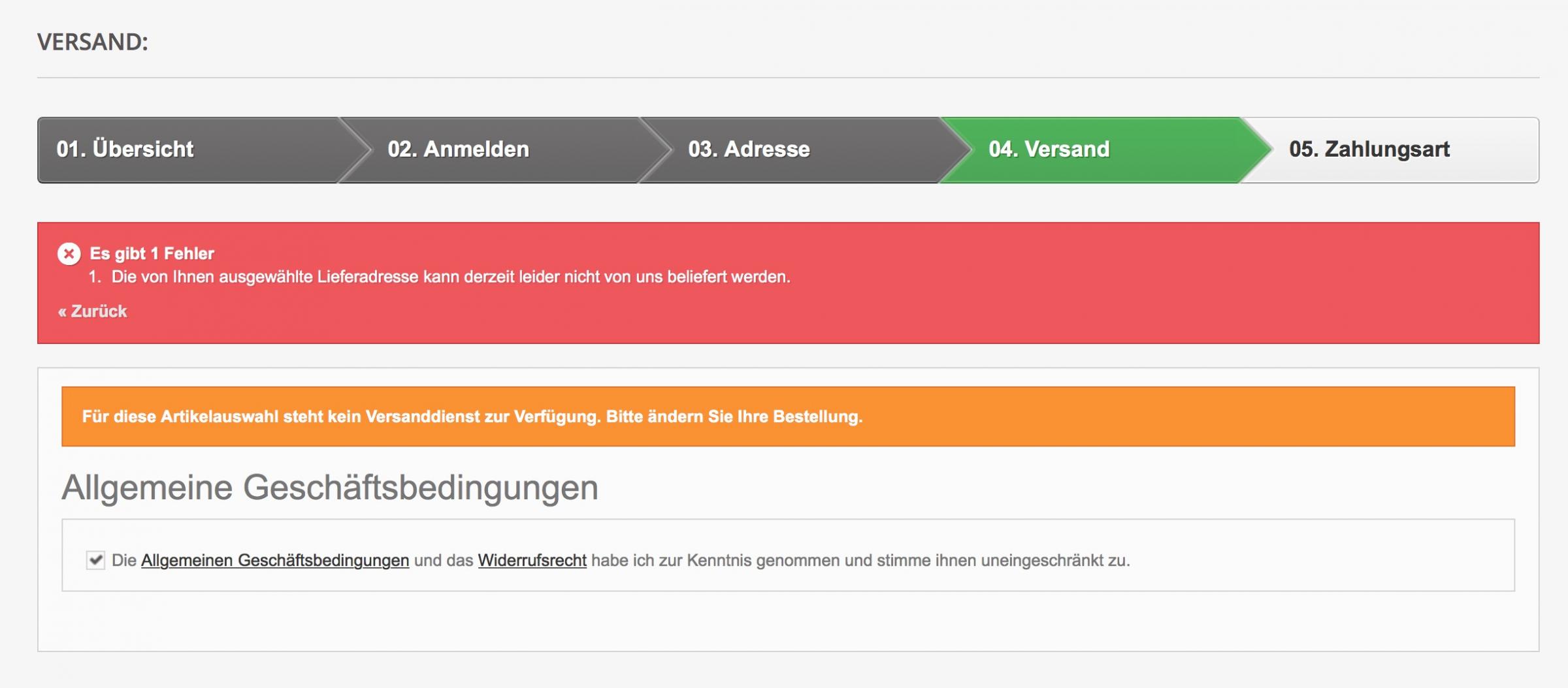 Lausli Posted November 22, 2016 Share Posted November 22, 2016 Guck mal in deinen Zonen ob du das Land oder den Lieferort deaktiviert hast. Link to comment Share on other sites More sharing options...