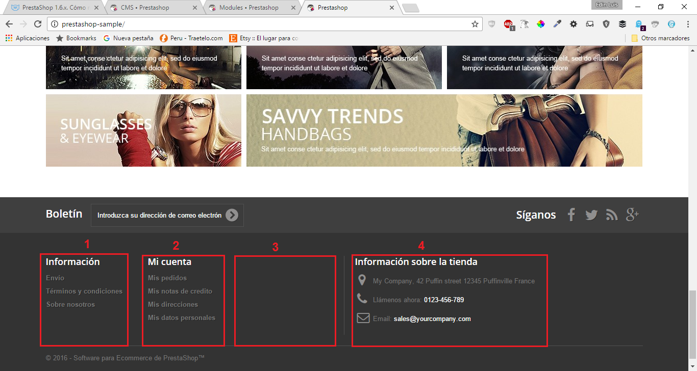 Edin Solano Posted November 22, 2016 Share Posted November 22, 2016 Hola Comunidad de Prestashop Deseo agregar un nuevo block en el footer, ya sea con link o con imágenes, después de buscar en Internet y no encontrar una solución precisa, pido ayuda a esta cominidad. Adjunto en la imagen tengo el bloque 4, que es espacio que deseo agregar el bloque de links. Link to comment Share on other sites More sharing options...