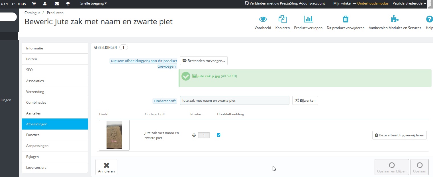 nftk Posted December 1, 2016 Author Share Posted December 1, 2016 Niet bewust een andere font gekozen, zal zo even kijken of ik dat terug kan veranderen. Als ik een plaatje wil toevoegen aan een product doe ik dat via "Producten ---> Afbeeldingen ----> nieuwe afbeeldingen aan dit product toevoegen. Link to comment Share on other sites More sharing options...