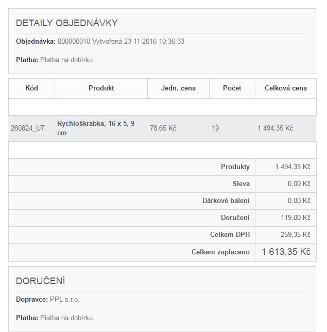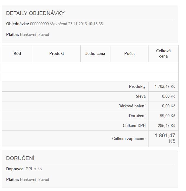 vladik1972 Posted November 23, 2016 Share Posted November 23, 2016 Dobrý den, mám PS 1.6.1.9 a při zaslání detailu objednávky se nezobrazí seznam objednaných položek. Takto se to však chová jen při platbě převodem. Při platbě na dobírku se seznam zboží v zaslaném detailu objednávky zobrazí. Nevíte prosím, kde je chyba? Nemá to třeba souvislost se stavem, kdy v případě platby převodem je stav čeká se na bankovní převod, kdežto v případě platby na dobírku je stav probíhá příprava. Děkuji za případnou radu. V příloze posílám obrázky jak se to chová. Vladimír Link to comment Share on other sites More sharing options...
