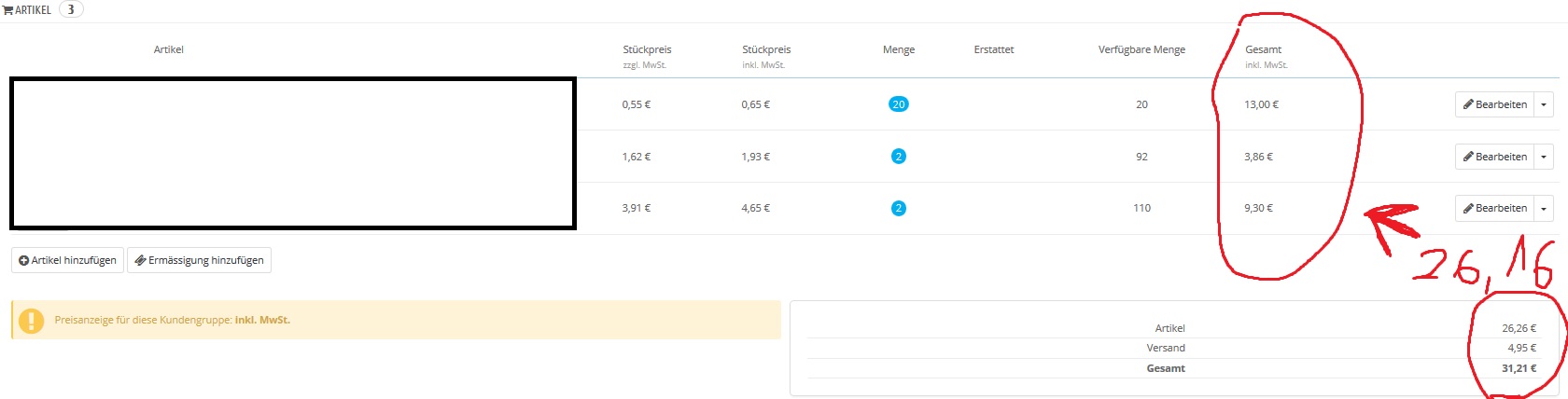bleumel Posted March 13, 2018 Share Posted March 13, 2018 Vielleicht ein wenig spät, aber bei mir hat geholfen: >Voreinstellungen > Allgemein > Rundungsregel (pro Artikel runden) Nebenbei bemerkt aber wahrscheinlich sowieso korrekt eingestellt: Rundungsmodus = kaufmännisch aufrunden und Nachkommastellen = 2 Seitdem arbeitet Paypal zuverlässig und genau. Link to comment Share on other sites More sharing options...