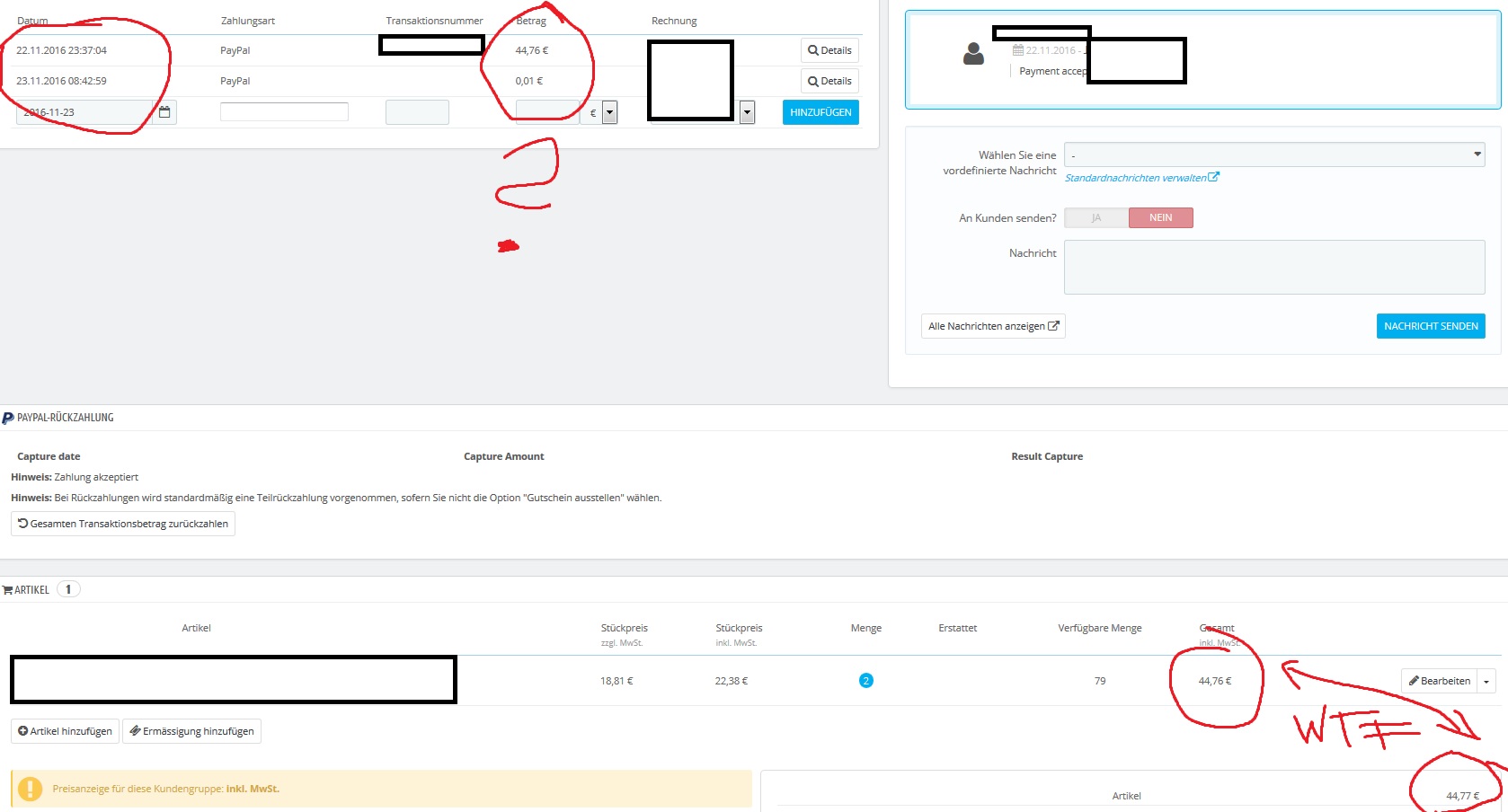 Battkau Posted November 23, 2016 Share Posted November 23, 2016 Moin Leute, hab ein Problem mit Paypal bzw Prestashop. 1. Nicht alle Bestellung mit Paypal werden komplett abgeschlossen. - Ich erhalte eine Email von Paypal. "Zahlung erhalten", schaue im BO nach und seh nur einer hat sich Registriert, aber keine Bestellung da. - Lege ich die Bestellung manuel an, gibts Berechnungsfehler seitens Prestashop meist um Centberäge 1-10cent 2. Bestellung erhalten mit Paypal, Bestellung auch im BO, aber "Fehler bei der Bezahlung" in der Bestellung. - Meist seh ich da, das bei der Paypalzahlung 2 Beträge erscheinen, sagen wir Warenkorb ist 20.00€, dann steht bei Paypalzahlung 19,98 und ein 0,02 Betrag. Einstellung: Override fremder Module deaktiviert (da es mit, irgentwelche Mailfehler gab) EU Rechtssicherheit: Anteilige mwst Versandkosten auf JA Was hab ich probiert seitdem: Paypal reset, Europäische Rechtssicherheit v2.0.2 reset, Paypal neuinstallation, EU Recht neuinstallation, prestashop cleaner laufen lassen. Kenn jemand ne funktioniernde Paypalversion oder liegt das an den Overrides oder was ist los ? Wird wohl mein letztes Jahr Prestashop, da ich schon 2 Jahre mich mit diversen Kindergartenscheiss rumplage, anstatt Marketing zu machen und sich aufs Verkaufen zu konzentrieren. Und 1.7 tuh ich mir nicht an, warscheinlich die selbe. ..... in gold. Schaut euch die Bilder an. Link to comment Share on other sites More sharing options...