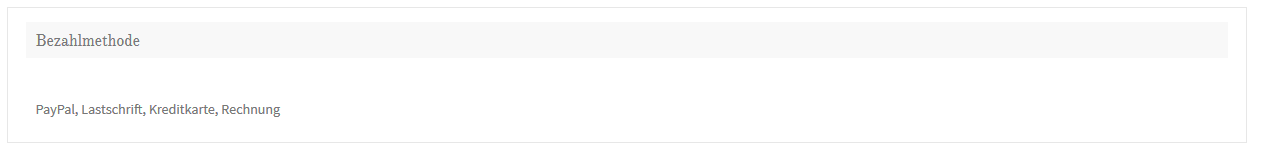 rictools Posted November 25, 2016 Share Posted November 25, 2016 Leider wird nach Abschluss der Bestellung über Paypal Plus immer "PayPal, Lastschrift, Kreditkarte, Rechnung " als Bezahlmethode angegeben und nicht nur die geählte Zahlngsart wie es eigentlich sein sollte. Nun, irgendwo (in den Übersetzungen oder im Code) kannst du die Bezeichnung sicher ändern. Link to comment Share on other sites More sharing options...