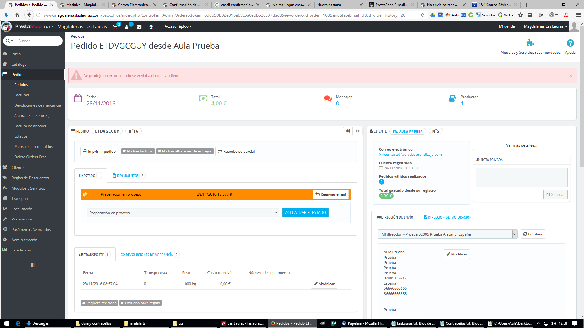 AmandaPinto Posted November 29, 2016 Share Posted November 29, 2016 Buenas, tengo una tienda online y cuando mis clientes hacen un pedido no me llega notificación a mi ni a ellos. Ya he comprobado que la configuración del correo electrónico funcione, y es así. Pero no entiendo porque los mensajes no me los envía. Me he metido en los pedidos y al actualizar estado y forzar el mensaje me sale el error que adjunto en la imagen. ¿Alguien puede ayudarme? Saludos y gracias. Link to comment Share on other sites More sharing options...