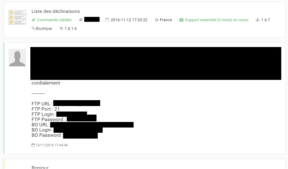 coeos.pro Posted November 30, 2016 Share Posted November 30, 2016 Quand j'ai un message d'un client ça ressemble souvent à ça : Les infos ne sont pas toujours aussi complètes, mais au moins tu peux immédiatement regarder le problème en te connectant au BO du client, du coup, en quelque minutes, le problème est réglé. Link to comment Share on other sites More sharing options...