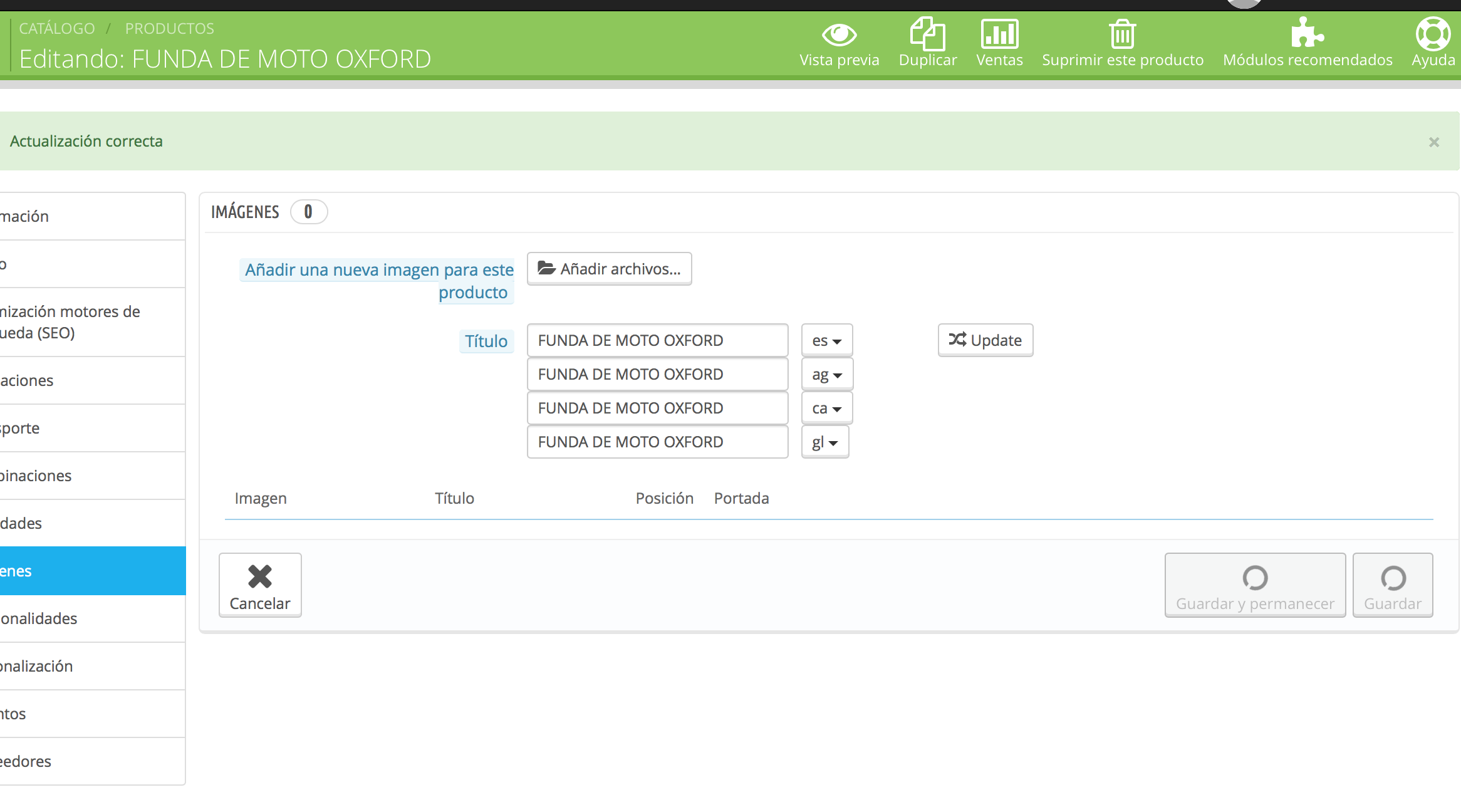 Al crear un producto de forma manual, todo menos la imagen funciona.