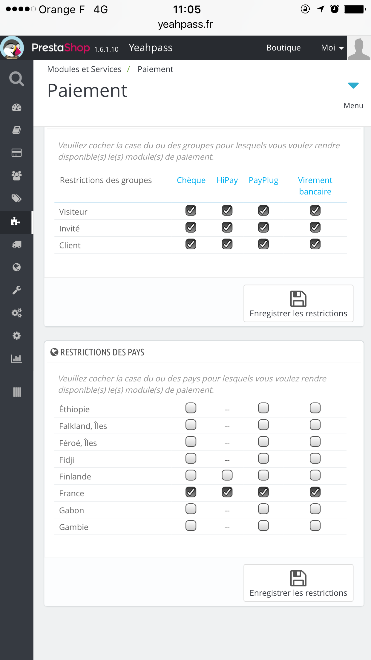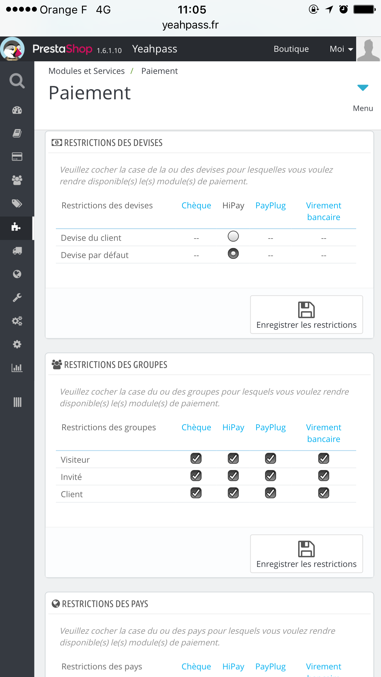 Problème modules paiement