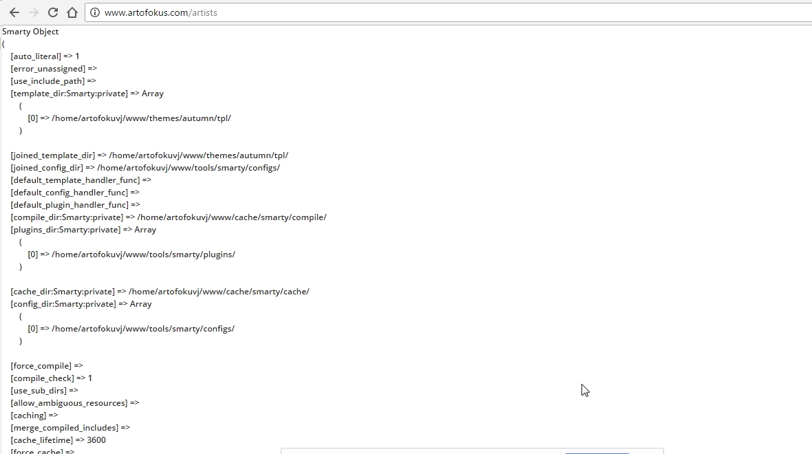 mani313 Posted December 7, 2016 Share Posted December 7, 2016 (edited) Hi, My website some of pages showing whole smaty variable in front office. like below on entire page, Smarty Object ( [auto_literal] => 1 [error_unassigned] => [use_include_path] => [template_dir:Smarty:private] => Array ( [0] => /home/artofokuvj/www/themes/autumn/tpl/ ) [joined_template_dir] => /home/artofokuvj/www/themes/autumn/tpl/ [joined_config_dir] => /home/artofokuvj/www/tools/smarty/configs/ [default_template_handler_func] => [default_config_handler_func] => [default_plugin_handler_func] => [compile_dir:Smarty:private] => /home/artofokuvj/www/cache/smarty/compile/ [plugins_dir:Smarty:private] => Array ( [0] => /home/artofokuvj/www/tools/smarty/plugins/ ) [cache_dir:Smarty:private] => /home/artofokuvj/www/cache/smarty/cache/ [config_dir:Smarty:private] => Array ( [0] => /home/artofokuvj/www/tools/smarty/configs/ ) [force_compile] => [compile_check] => 1 [use_sub_dirs] => [allow_ambiguous_resources] => [caching] => [merge_compiled_includes] => [cache_lifetime] => 3600 [force_cache] => [cache_id] => [compile_id] => [left_delimiter] => { [right_delimiter] => } [security_class] => Smarty_Security [security_policy] => [php_handling] => 0 [allow_php_templates] => [direct_access_security] => 1 [debugging] => [debugging_ctrl] => NONE [smarty_debug_id] => SMARTY_DEBUG [debug_tpl] => file:/home/artofokuvj/www/tools/smarty/debug.tpl [error_reporting] => [get_used_tags] => [config_overwrite] => 1 [config_booleanize] => 1 [config_read_hidden] => ..... ..... How do i get rid off this ? before i just enabled smarty console debug on back office and i disabled it also, but still I don't know how to fix this ? or where its coming from. Can you please help me out on this ? thanks ps : also attached my screenshot for your reference. Edited December 7, 2016 by mani313 (see edit history) Link to comment Share on other sites More sharing options...