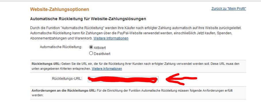 Claudiocool Posted December 11, 2016 Share Posted December 11, 2016 Hallo zusammen, ich finde in der Suche nicht so wirklich was zu meinem Problemchen..... Ich möchte PayPal Standard nutzen (Modul 3.1.1), in der Sandbox hat alles gut funktioniert. Nun hab ich es scharf gestellt, bin aber bei meinen Kontoeinstellungen über die Rückleitungs-URL gestolpert, die noch auf meinen alten OS-Shop verweist. Das sollte so besser nicht sein deshalb suche ich nun die passende URL für die Rückleitung auf die PayPal-Bestätigung im Prestashop. Kann mir die jemand nennen? Müssen da noch irgendwelche Parameter angehängt werden? Link to comment Share on other sites More sharing options...