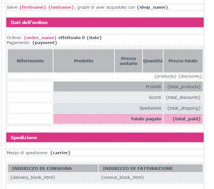 Mastro Gabrio Posted December 14, 2016 Share Posted December 14, 2016 (edited) Buona sera....o meglio...buona notte a tutti, sto diventando matto.....sto lavorando su un progetto con presta 1.6.1.7 ed ho notato che nella mail di conferma ordine i campi che dovrebbero mostrare il contenuto dell'ordine sono vuoti mentre i campi con i prezzi/costi sono popolati correttamente. Ho controllato nelle traduzione del mio tema (iqit-wherehouse) e ci stanno le variabili {products} e {discounts}, poi avendo letto un post simile ho provato a copiarci quelle del tema di base....ma niente.....ho trovato un tizio con un problema di allineamento al quale rimandavano il file html buono, ma neanche quello funziona. in un altro post ho letto che si consigliava di installare/attivare il modulo nativo/gratuito "mail alert" andando a prendere direttamente da gestione moduli....ma io non ce l'ho....non lo trovo cosa altro posso fare? Edited December 14, 2016 by Mastro Gabrio (see edit history) Link to comment Share on other sites More sharing options...