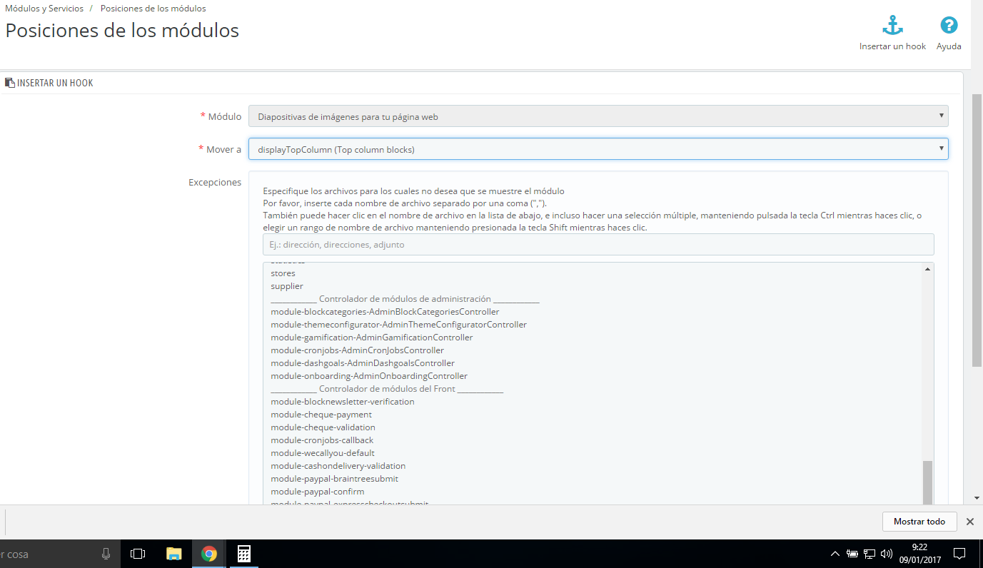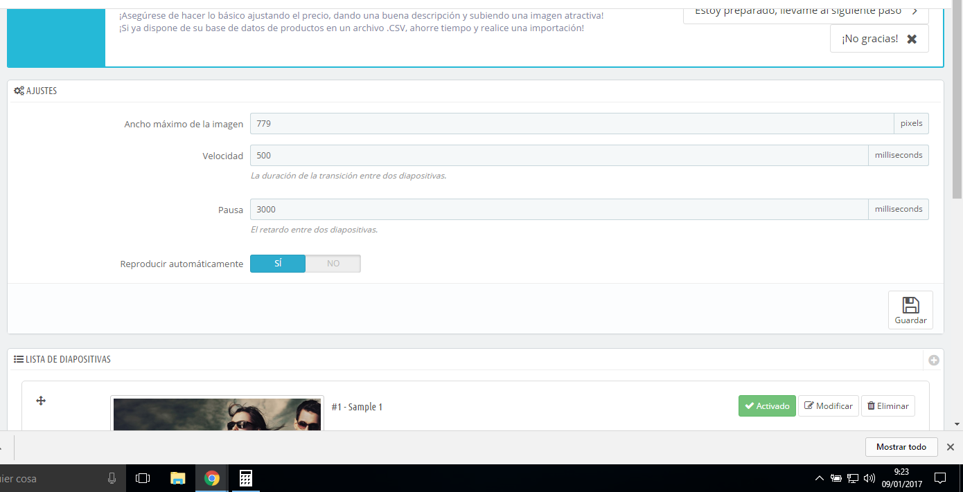 puchesub Posted January 9, 2017 Author Share Posted January 9, 2017 (edited) Yo en la configuracion del modulo en modulos - modulos, tengo la opción de cambiar la anchura maximo.. No tienes porque tocar los ficheros: /themes/default-bootstrap/modules/homeslider/ Ni en principios los js del modulo: /themes/default-bootstrap/js/modules\homeslider/js/ Buenos dias. Aprovechando que ya se terminaron las navidades, vuelvo manos a la obra. Llevo buscando un buen rato, tanto en modulos y servicios - Diapositivas de imagenes como en posiciones de los modulos - Diapositivas de imagenes y no me aparece ninguna opcion sobre el largo, pero si sobre el ancho. Adjunto imagenes. Edit: Mi pagina web es http://s646678157.mialojamiento.es/ Edited January 9, 2017 by puchesub (see edit history) Link to comment Share on other sites More sharing options...