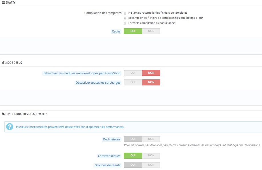 sehp Posted December 23, 2016 Author Share Posted December 23, 2016 Bonjour, dans le sous-dossier en ftp ../cache/class_index.php, tu supprimes le fichier il va se régénérer. une autre solution est que je puisse voir ta page performance peux tu faire un print de cette page? Ornot :) Voici les captures d'écran: Link to comment Share on other sites More sharing options...