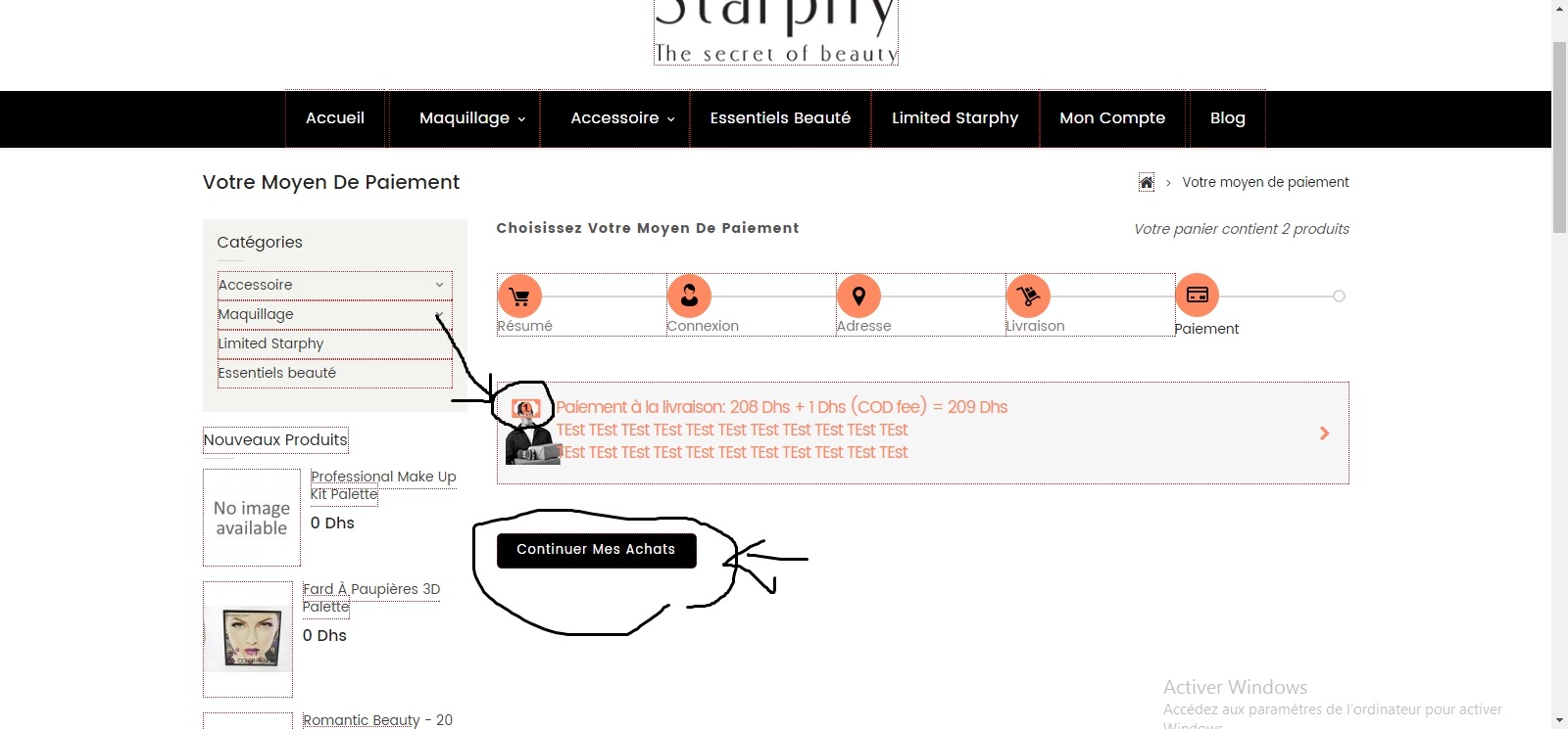 princeofperstas Posted December 28, 2016 Share Posted December 28, 2016 Bonjour j'ai beau essayer pour enlever l'icon depuis l'étape du paiement ( tunnel de commande ) j'utilise le module COD with Fee. j'ai désinstallé le module chash à la livraison . Vous trouvez si joint image capture de mon problème Merci Je voudrais éventuellement le nom du bouton ''continuer mes achats. j'ai besoin d 'aide à titre urgent .Svp !Merci! Link to comment Share on other sites More sharing options...