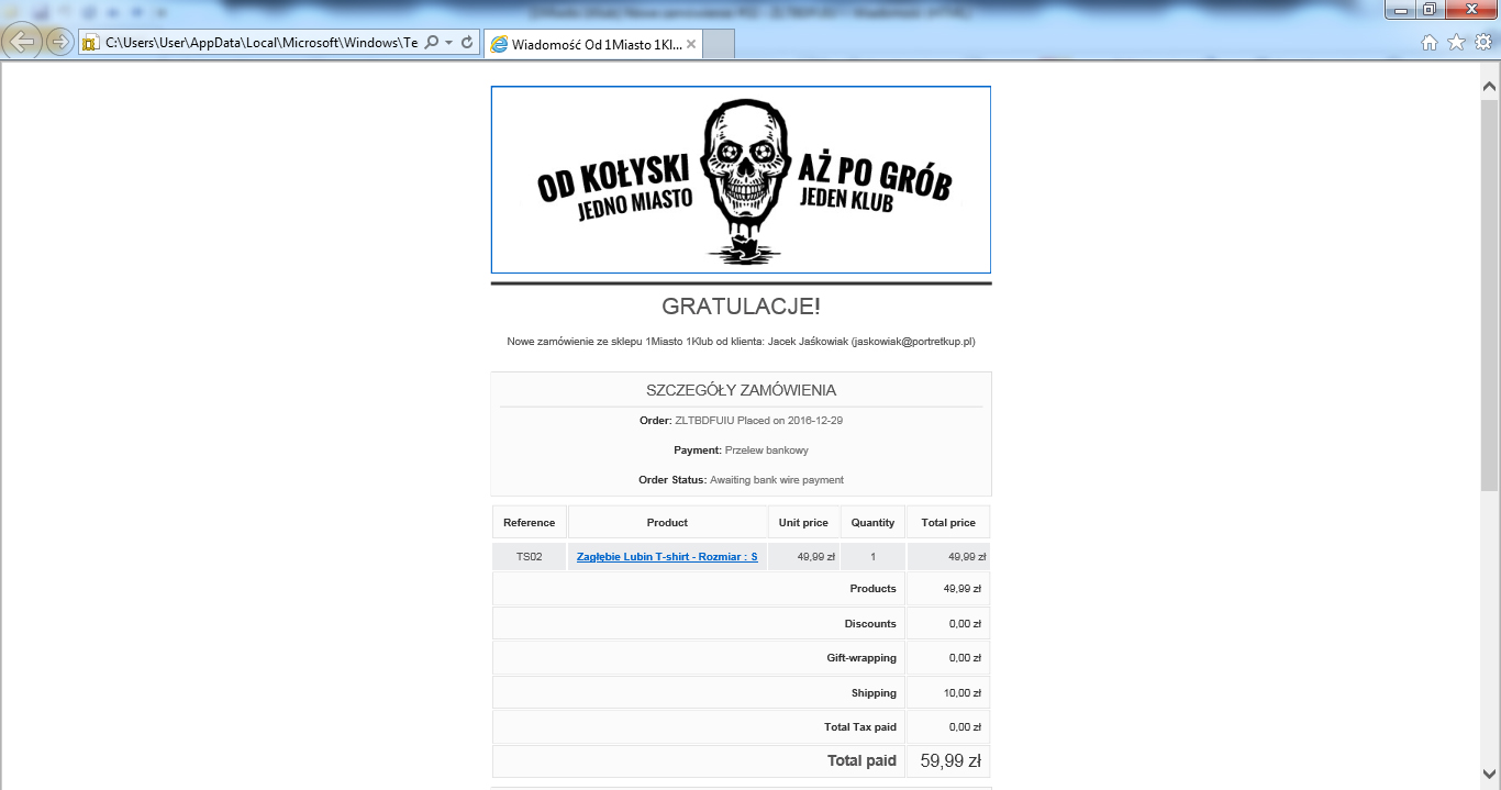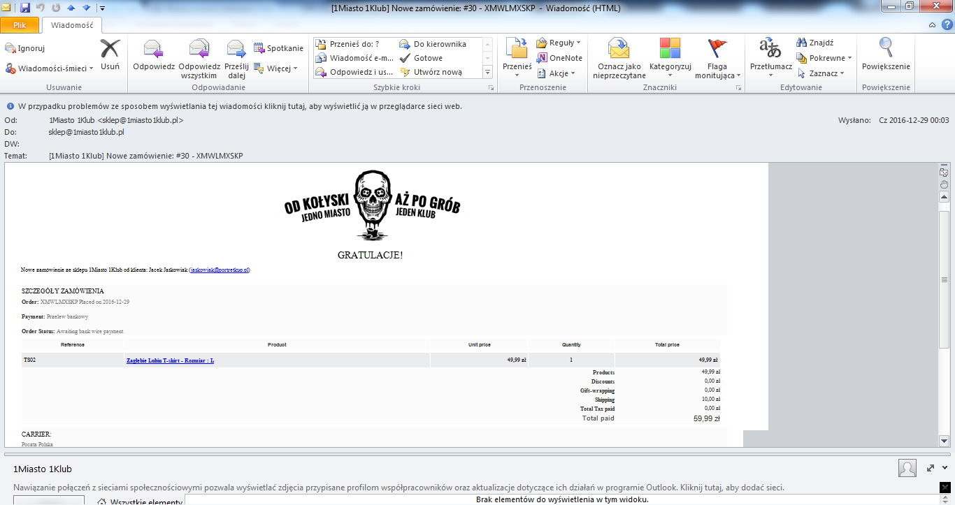 Otóż otrzymuję powiadomienie o nowym zamówieniu, ale css wiadomości niestety nie jest odczytany poprawnie.