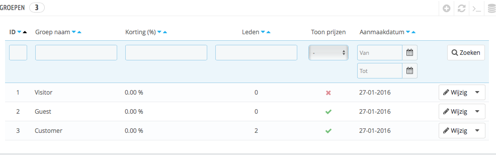 El Patron Posted January 2, 2017 Share Posted January 2, 2017 Hello, i have a Prestashop 1.6.1.4. In this shop i have a question about the display of the pricing. I want to show only price to customers who has an account, and are logged in. I have 3 customers group Visitors, Guest and Customer By the menu >clients >groups visitors i have set off the display of price (see print screen) Now on the front still the prices are visible. What must i do to show no prices for visitors, but only when you are log in as customer? In the image of 'groups' of original post, you have visitor group 'disabled', please enable that, clear caches and retest. 1 Link to comment Share on other sites More sharing options...