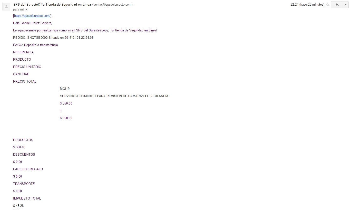 Buenas tardes, espero me puedan ayudar, migre mi tienda de cloud a un hosting de paga, después de mucha lectura en foros e internet pude dejarlo funcionando bien, o al menos eso pensé, ya que me puse a realizar unas pruebas y tengo el problema que cuando envía los correo de confirmación de pedido o cualquier otro correo a los clientes, estos llegan sin la plantilla de correo, solo llegan las letras.... el tema que tengo es el default-booststrap que trae la versión 1.6.1.3 ... voy a tradiciones y me salen las plantillas correctamente, esta seleccionado el idioma MX, todo esta bien, pero vuelvo a realizar una prueba y solo me llegan las letras sin la plantilla correspondiente. La verdad ya no se que hacer y no he encontrado nada referente a este tema, solo encuentro el como traducir o modificar las plantillas.
