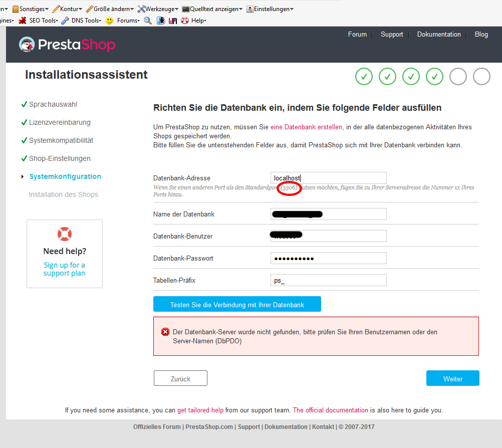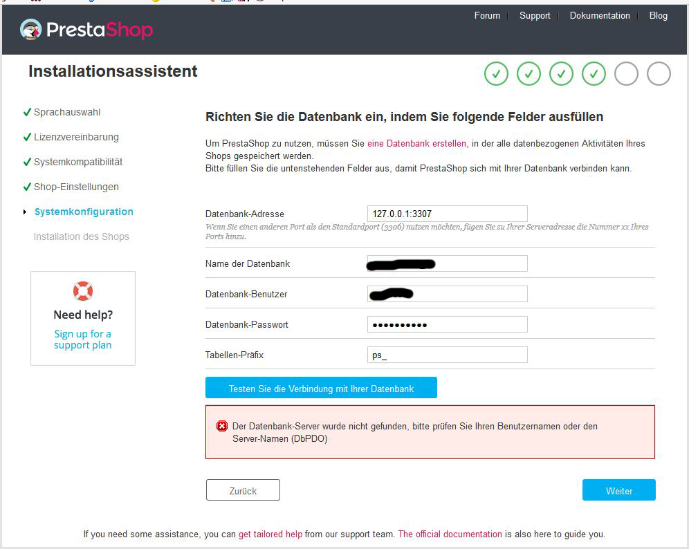@rictools , ja, das kann ich. Ich sehe ja auch die angelegte Datenbank, die ich extra für PrestaShop angelegt habe.