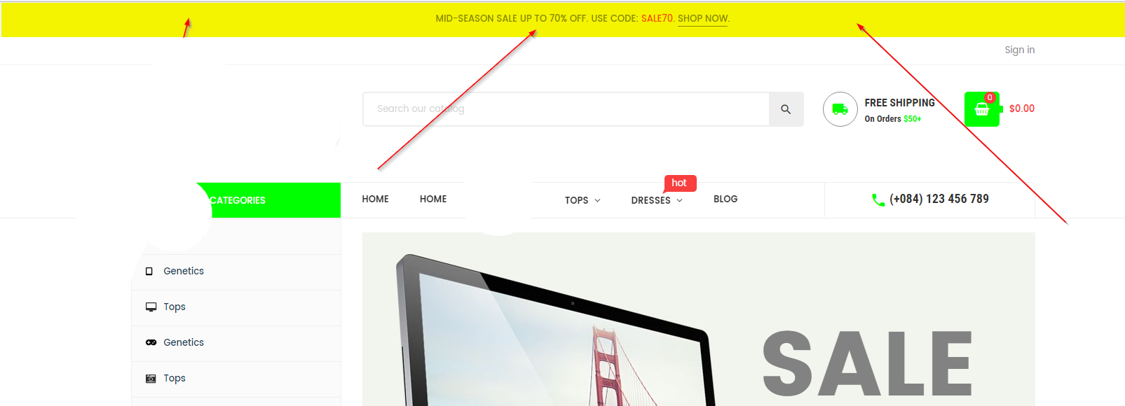 tank_ Posted February 26, 2017 Author Share Posted February 26, 2017 Hi I am referring to the Default Theme (and any other theme I tried installing in PS 1.7) that comes installed in PrestaShop 1.7. I have installed it a few different places and the Default Theme always shows this Top Banner (shown in OP). I just checked the new DEMO Store and it wasn't showing that Top Banner as a Default anymore. But, I believe they removed it in this last update (v1.7.0.5). So I am pretty sure that there isn't a problem anymore. Nevertheless, thank you for taking the time to help. LH&R -tank_ Link to comment Share on other sites More sharing options...