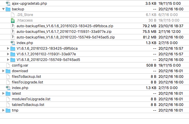 nadie Posted January 9, 2017 Share Posted January 9, 2017 Hola a todos. El modulo que actualiza las versiones de Prestashop crea un backup previo. Cada vez que actualizo una version de Prestashop el modulo crea una copia de seguridad, como debe ser, por si existen fallos y restaurar si procede. Ahora tengo acumuladas una serie de copias por cambio de version que me gustaría borrar y que ocupan espacio en disco en mi servidor. Me imagino que por version podre borrar los dos ficheros cuya nomenclatura es coincidente. No obstante me gustaría saber si puedo hacerlo sin riesgo alguno. Por ejemplo, si quiero borrar v1.6.1.6 debo borrar los dos ficheros. (ver imagen) Gracias por vuestra ayuda. Puedes borrarlos sin problema, bien mediante el administrador archivos que tienes en el hosting, o mediante algún cliente ftp como filezilla. Como bien dices, esas copias se hacen al usar el módulo de 1click, porque por defecto viene la opción "Back up my files and database" activada por defecto. La ruta ya la conoces, porque me los estas mostrando en las imagenes ) Si no quieres tomar riesgos, pues te haces una copia de los "zip" de los backup en tu ordenador, pero vamos.... Un Saludo ! 1 Link to comment Share on other sites More sharing options...