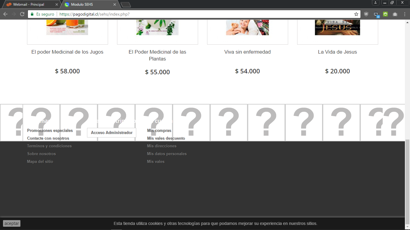 nadie Posted January 11, 2017 Share Posted January 11, 2017 Hola, Quisiera saber si existe alguna solución con respecto a los signos de interrogación que aparecieron en mi pagina Prestashop 1.6.1.6, lo raro que es en un lugar donde no poseo imágenes, es el footer desconozco el origen pero me gustaría que me indicaran que se puede hacer. Aquí les dejo la pagina para que puedan ver lo que está pasando. www.pagodigital.cl Gracias. Desde Inspeccionar Elemento -> Console en Chrome te salen 3 fallas de recursos no cargados en tu tienda. Te muestro imagen para que lo veas. Las imágenes que te están fallando segun la consola son: /themes/default-bootstrap/img/price-container-bg.png /themes/default-bootstrap/img/footer-bg.png /themes/default-bootstrap/img/bg_bt.gif Te adjunto el directorio "img" de la plantilla de Prestashop 1.6.1.10, por si quieres resubir las 3 imagenes que te estan fallando. img.zip 1 Link to comment Share on other sites More sharing options...