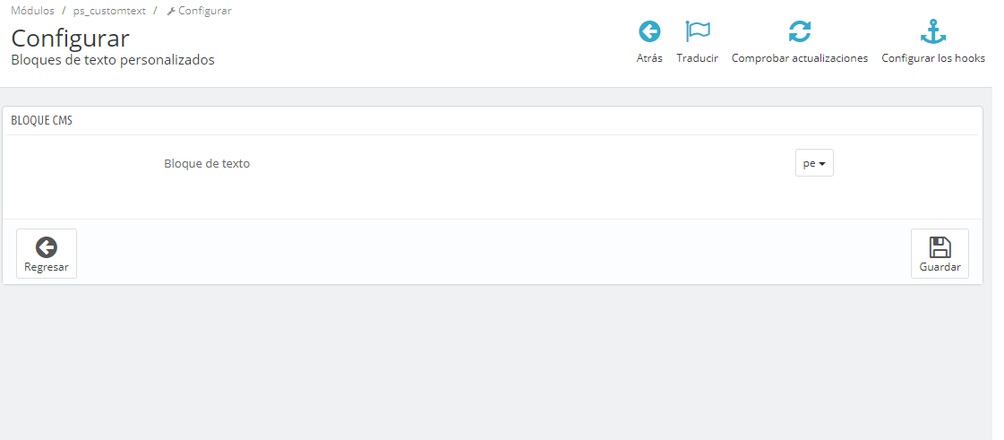 Tomas Posted December 18, 2017 Share Posted December 18, 2017 On 1/17/2017 at 8:23 AM, carlñ said: Hola compañeros, Estoy utilizando la opción multitienda en Prestashop 1.7.0.4 con el tema por defecto, y todo funciona correctamente menos el módulo de texto personalizado (ps_customtext). Cuando creo la “tienda 2”, el modulo aparece sin texto en el FrontOffice, accedo a configurar el texto en el BackOffice, pero el texto está ahí, lo modifico y lo guardo y nada, aparece igual en blanco. He reiniciado el módulo y el texto aparece, lo modifico y guardo, pero en el FrontOffice sigue apareciendo el texto por defecto. Lo he desinstalado y vuelto a instalar, he limpiado el cache, el historial del navegador con el mismo resultado. Sin embargo, en la “tienda 1” lo puedo modificar sin problemas. He probado en todas las versiones de Prestashop 1.7 incluso en diferentes navegadores y también surge el mismo problema. ¿Alguien sabe algo? Un saludo y muchas gracias. Tengo el mismo problema, alguna solución para esto ? Link to comment Share on other sites More sharing options...