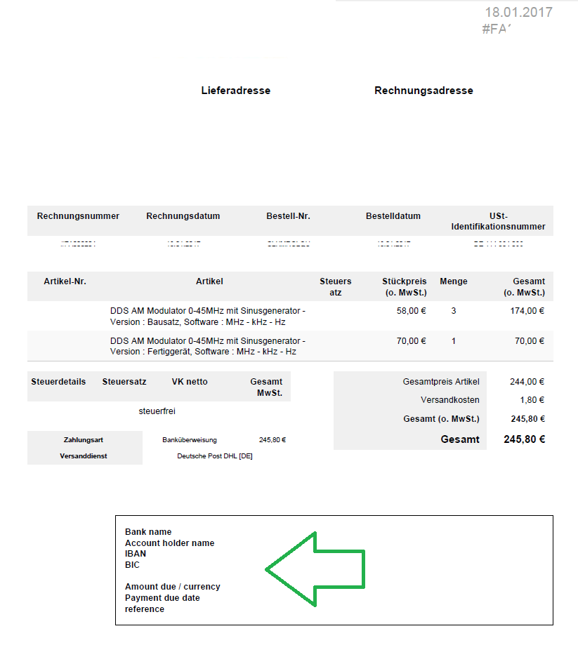 Ich hab jetzt mal den Kasten trotzdem drin gelassen und den Text durch meine Bankdaten ersetzt.