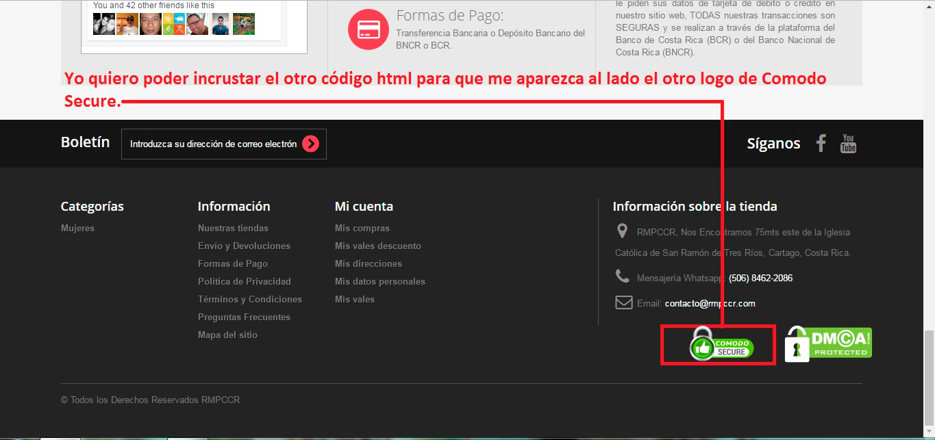 Pipex_9210 Posted January 20, 2017 Share Posted January 20, 2017 Buenas tardes amigos, Yo se que éste tema posiblemente ya se haya tocado bastante, pero necesito una ayuda un poquito más específica para mi caso. Recientemente adquirí un certificado SSL y mi proveedor hosting me realizó la instalación, todo funciona bien la verdad. Sin embargo a mi correo me llego un link donde dice que puedo poner un código html para que me salga el logo de ellos y que indique que esta protegido por ellos mi sitio web. El certificado que compre es un Possitive SSL de Comodo. Yo actualmente tengo instalado el módulo contentbox y ahí inserte un código de DMCA y sale bien en el footer de mi web, yo mismo copie y pegue el código html y sale perfecto funciona bien. Sin embargo con el código de comodo secure no logro hacer que me aparezca el logo. Yo lo que quiero es que al lado de ese otro logo me aparezca el logo de comodo secure. Les adjunto unas tomas de pantalla de como esta mi sitio ahorita y como quiero que quede. Toda la ayuda que me puedan brindar se los agradecería enormemente. Link to comment Share on other sites More sharing options...