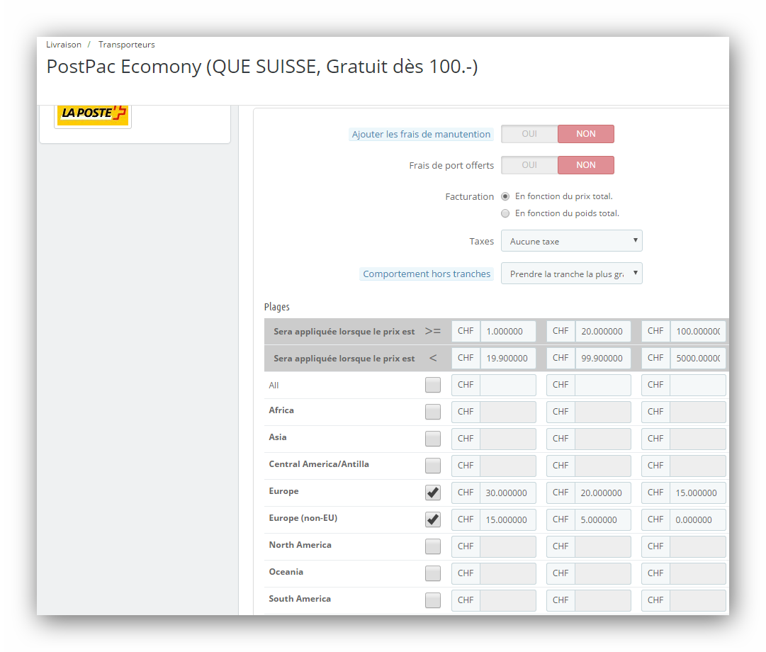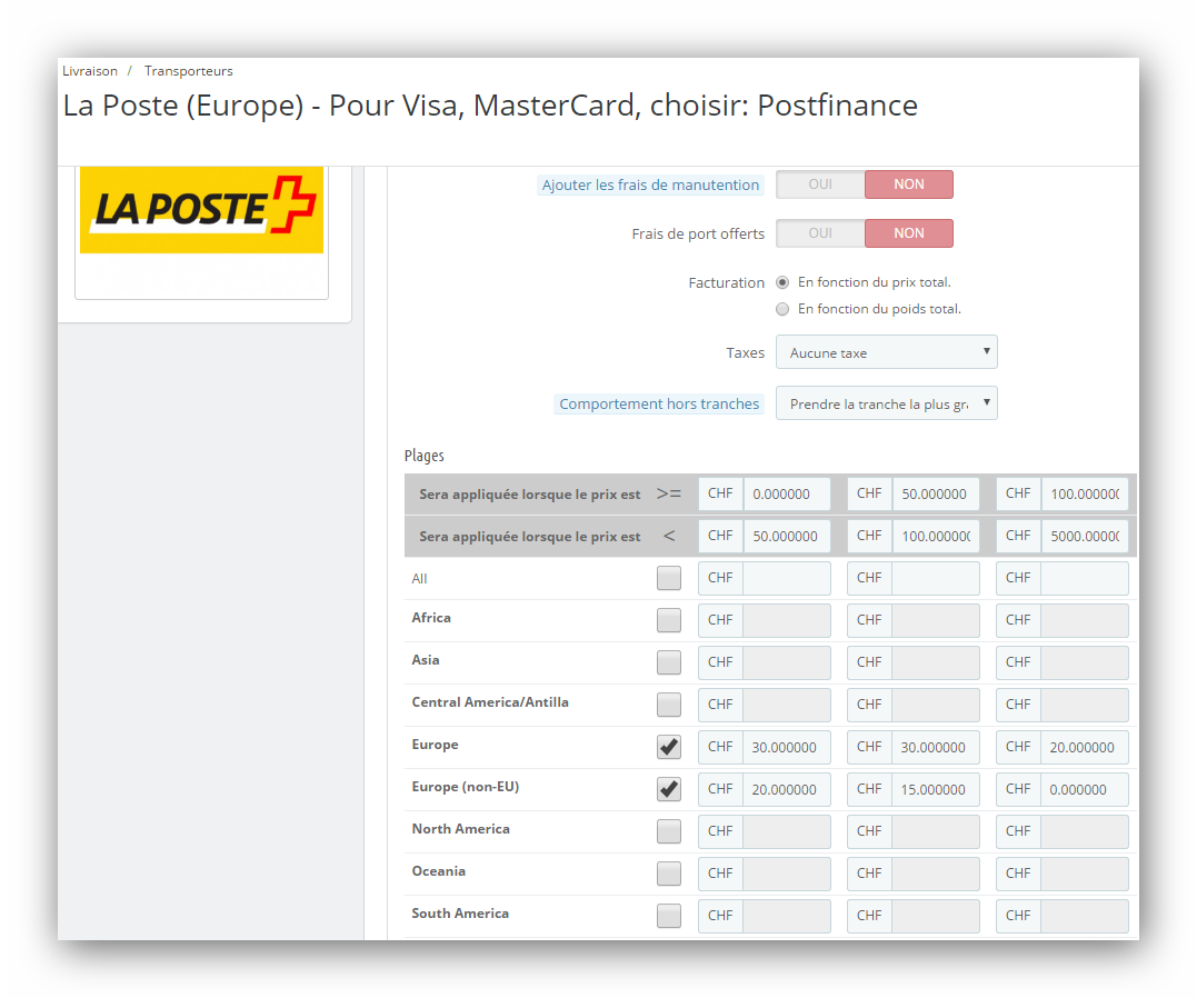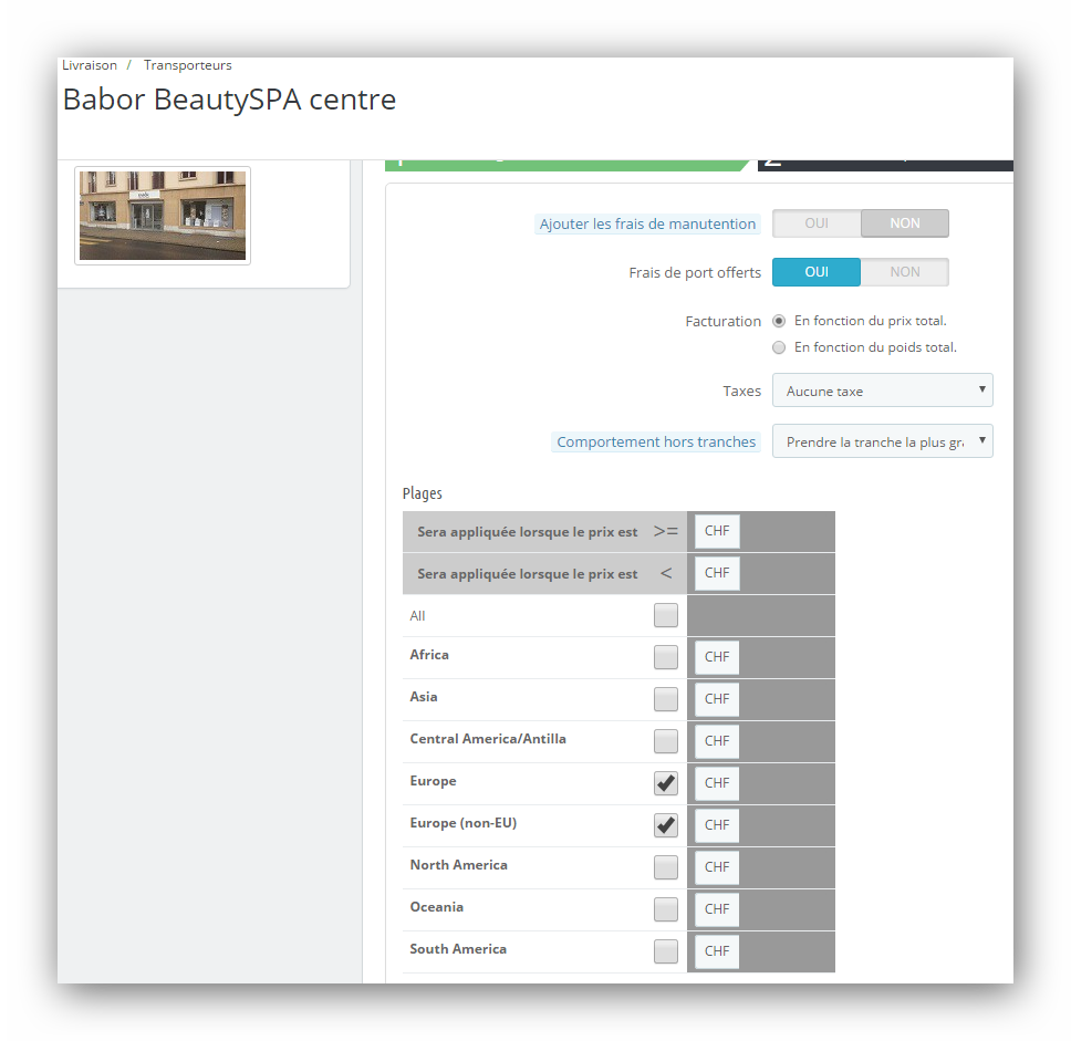 jeanpierregillieron Posted January 29, 2017 Share Posted January 29, 2017 (edited) Bonjour, Quand un client a fait une commande et doit choisir le mode de livraison: -En changeant le lieu de livraison (client avec deux adresses, une Suisse et une en France) , les choix de livraison disparaissent, et il est indiqué: aucune méthode de paiement (en rouge) Il faut tout quitter et recommencer... Des fois les frais de ports pour la France sont GRATUIT, même si j'ai indiqué Toujours 20 Euro entre 50 et 2000.- Des fois le mode de paiement par carte de crédit n'existe pas ??? Est-ce que quelqu'un a ce problème, voir une solution, ou une idée. Je ne vois pas comment m'en sortir RAPIDEMENT, 1 commande sur 2 DOIT est livrée sans frais de port. Le Site: www.Babor-BeautySPA-centre.ch Merci d'avance. Jean-Pierre ---------------------------------------------------------------------------------------------------------------------------------- Je viens d'ajouter les 3 (images) pour les modes pour les transporteurs, une fois ça fonctionne et la fois d'après, pour une commande de 20 frs, j'ai des frais de ports GRATUIT. Pour mes test mon compte a une adresse Suisse (NON Europe) et une adresse à Paris (Europe) J'obtiens également des fois un chevauchement, de valeurs, voir l’obligation de supprimer le transporteur et recommencer ...(qu'on peut supprimer en cliquant sur transporteur gratuit, ensuite on recommence) Sauf erreur de ma part, il me semple qu'il y a u ÉNORME PROBLÈME pour la gestion des transporteurs. Edited January 29, 2017 by jeanpierregillieron (see edit history) Link to comment Share on other sites More sharing options...