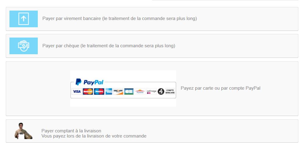 bloodysmily Posted January 31, 2017 Share Posted January 31, 2017 Bonjour, Au niveau paiement du panier sur Prestashop 1.6.1.6, le choix de paiement avec Paypal est affiché au milieu, alors que tous les autres choix sont alignés à gauche.... (Petite photo attaché, pour mieux comprendre) Où peux-je changer cela ? Merci Link to comment Share on other sites More sharing options...