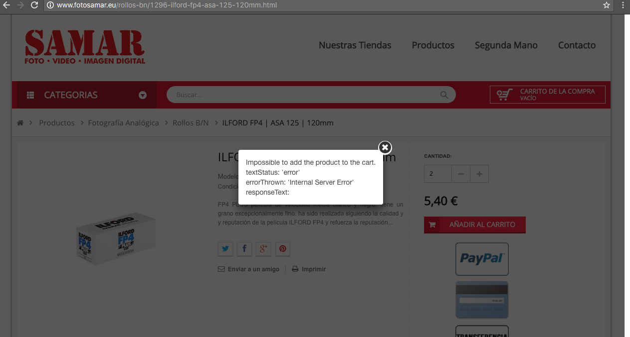 Todo funciona correctamente, las compras, los pagos... etc... salvo el añadir determinados productos al carrito, esto es: