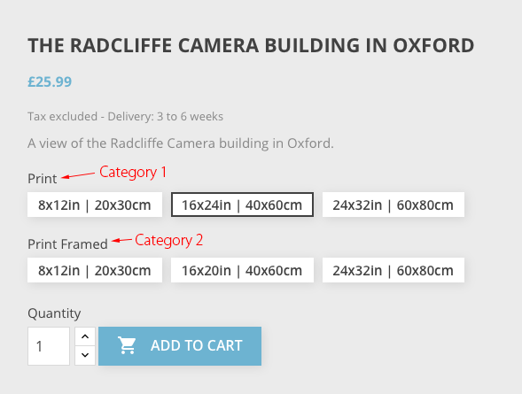 Walrus Posted February 1, 2017 Share Posted February 1, 2017 (edited) I have created 3 attribute categories: Prints with different sizes; Framed Prints with different sizes; and Frame Types with two choices. When I add one category to combinations (see attached screenshot), I can set one combination as the default and then impact the price for the others. So far so good. However, when I add the second category, prices remain at default for it and don't change. Will the option only work with one attributes category? I actually need three: print, print framed, and frame type. Anyone know how to do this or if this is a known issue or a limitation of the feature? Prestashop 1.7 (latest). Thanks. Edited February 1, 2017 by Walrus (see edit history) Link to comment Share on other sites More sharing options...