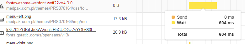 Od jakiegoś czasu borykam się z problemem wolno wczytujących się ikon z font awesome. Jest to na tyle irytujące, że jest to w szczególności widoczne przy karcie produktu. Testowałem stronę przez pingdom i jak widać na załączonym screenie jest coś zdecydowanie nie tak. Czy możecie mi powiedzieć w czym tkwi problem, czy to font awesome jest takie wolne, czy może jakiś błąd w kodzie, że czas oczekiwania jest tak długi?