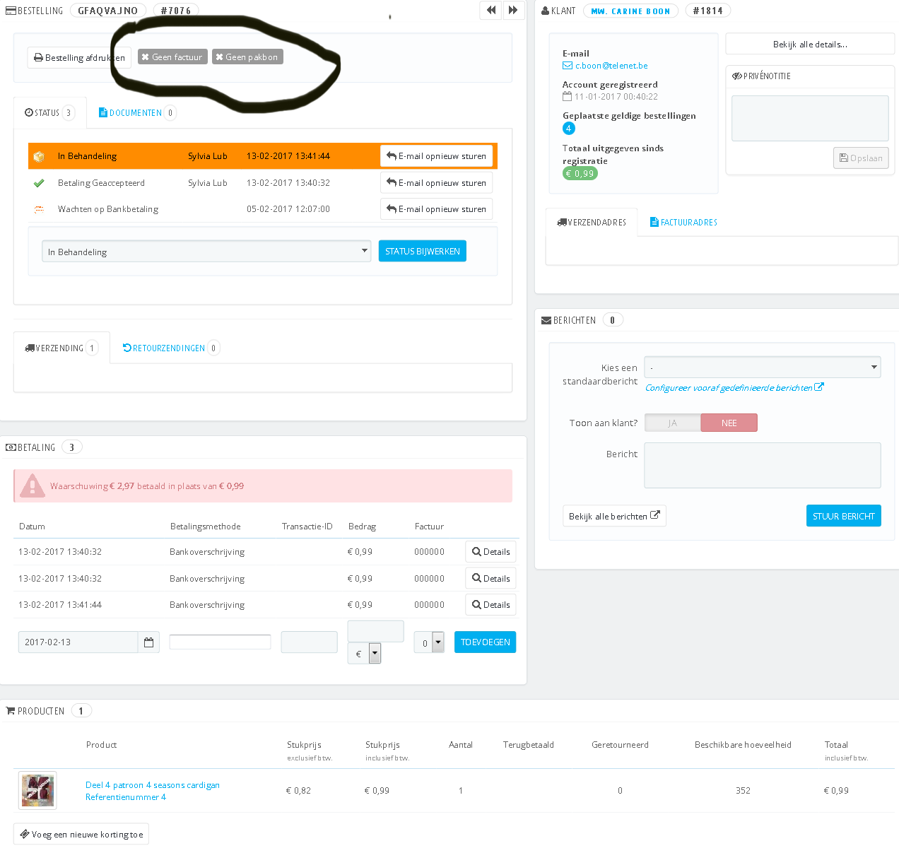 Breigarenkopen Posted February 13, 2017 Author Share Posted February 13, 2017 Nog even een update, als ik de status aanpas naar een andere, krijg ik direct een waarschuwing dat er 2 x betaald is, pas ik weer de status aan, dan krijg ik weer een waarschuwing dat er 3 x betaald is...geen idee of het dit er ook iets mee te maken kan hebben ? Owh ja, en de klant krijgt overigens wel netjes de factuur in de e-mail. Link to comment Share on other sites More sharing options...