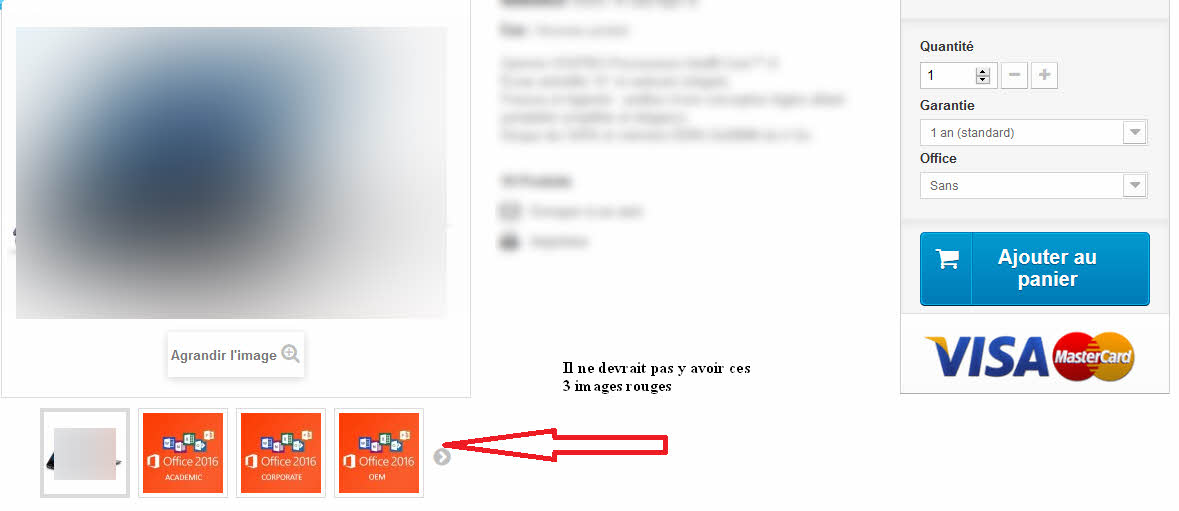 Autourdupc Posted February 3, 2017 Share Posted February 3, 2017 Bonjour,Je viens de créer une nouvelle boutique PS en V1.6.1.11. Dans le principe, je créé un produit avec des déclinaisons. Mon produit contient 5 images dont 2 sont communes à toutes les déclinaisons, et chaque déclinaison contient en plus sa propre image. Decl1 --> Image 1 + Imgprod 1 + Imgprod 2 Decl2 --> Image 2 + Imgprod1 + Imgprod2 Decl3 --> Image 3 + Imgprod1 + Imgprod2 Quand je clique sur mon produit à partir de la page d'accueil de mon site, toutes les images sont affichées. Ensuite, si je "joue" avec les déclinaisons, alors les bonnes images s'affichent correctement en fonction de mon choix. Dans le réel, j'ai plus d'images et j'ai 2 groupes de 3 déclinaisons ce qui me fait 6 choix possibles. Le bug : Quand je clique sur le produit à partir de la page d'accueil du site, je ne devrais pas avoir toutes les images qui s'affichent.Il semblerait que le filtre ne fonctionne pas sur les images. A vous lire,Laurent. Link to comment Share on other sites More sharing options...