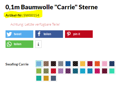 Wenn du also bei der Variante Himmelblau die Artikelnummer um -Himmelblau erweiterst dann sieht der Kunde wie auch du, wenn er Himmelblau bestellt, SW00154-Himmelblau