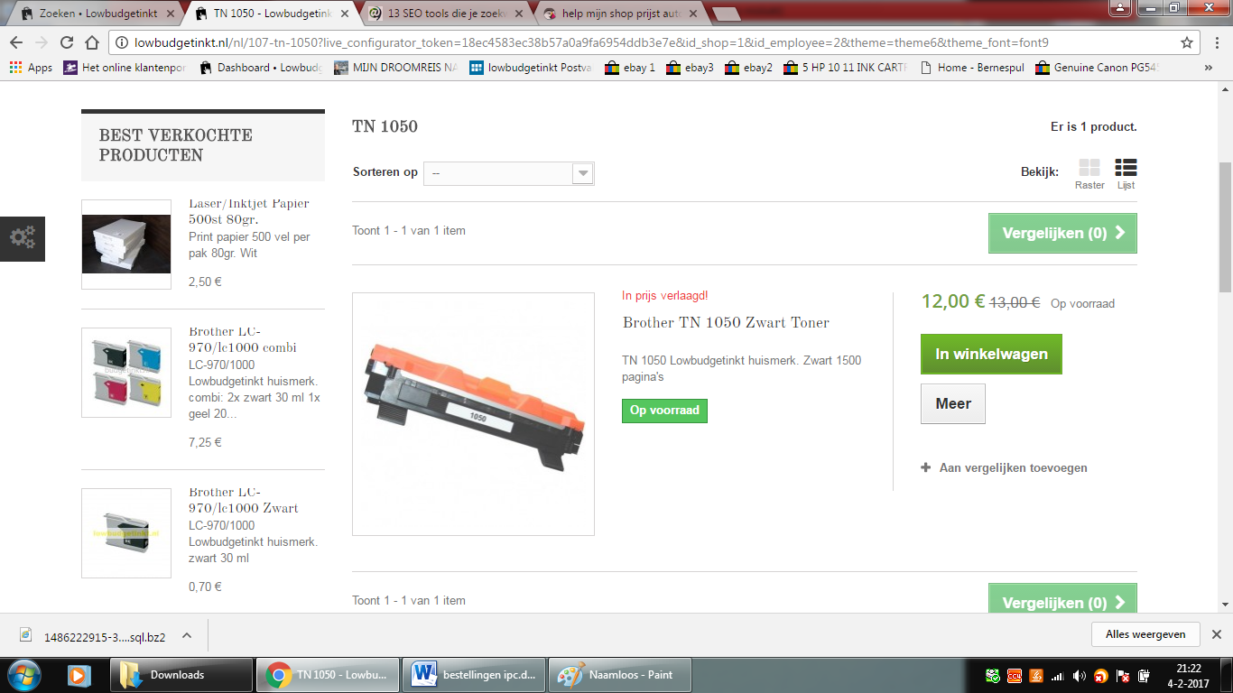 ecommerce16 Posted February 4, 2017 Share Posted February 4, 2017 (edited) heb je je cache al eens geleegd, misschien dat een oude regel nog wordt toegepast die niet meer zichtbaar is maar nog wel werkt? Het zal ergens vandaan moeten komen namelijk. Het is trouwens een goed idee om je shop te upgraden. Kan ook zijn dat daar een probleempje zit. We werken momenteel al met 1.6.1.11 En je shop is meertalig, maar alleen de nl versie is up to date. Dat zou ik ook aanpassen. Edited February 4, 2017 by Curious (see edit history) Link to comment Share on other sites More sharing options...