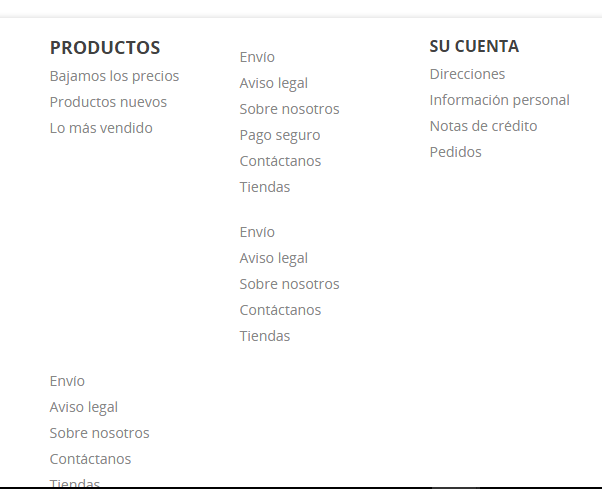 joaquindwpw Posted February 6, 2017 Share Posted February 6, 2017 (edited) Hola, cuando intento cambiar la lista de enlaces, our company, no me guarda el cambio, pero ademas me ha generado varios apartado repetidos en la pagina web, pero no me aparece en el panel de configuración de lista de enlace para eliminarlo, ¿como puedo eliminarlo o modificarlo?. . La versión de prestashop es la 1.7.0.4 Edited February 6, 2017 by joaquindwpw (see edit history) Link to comment Share on other sites More sharing options...