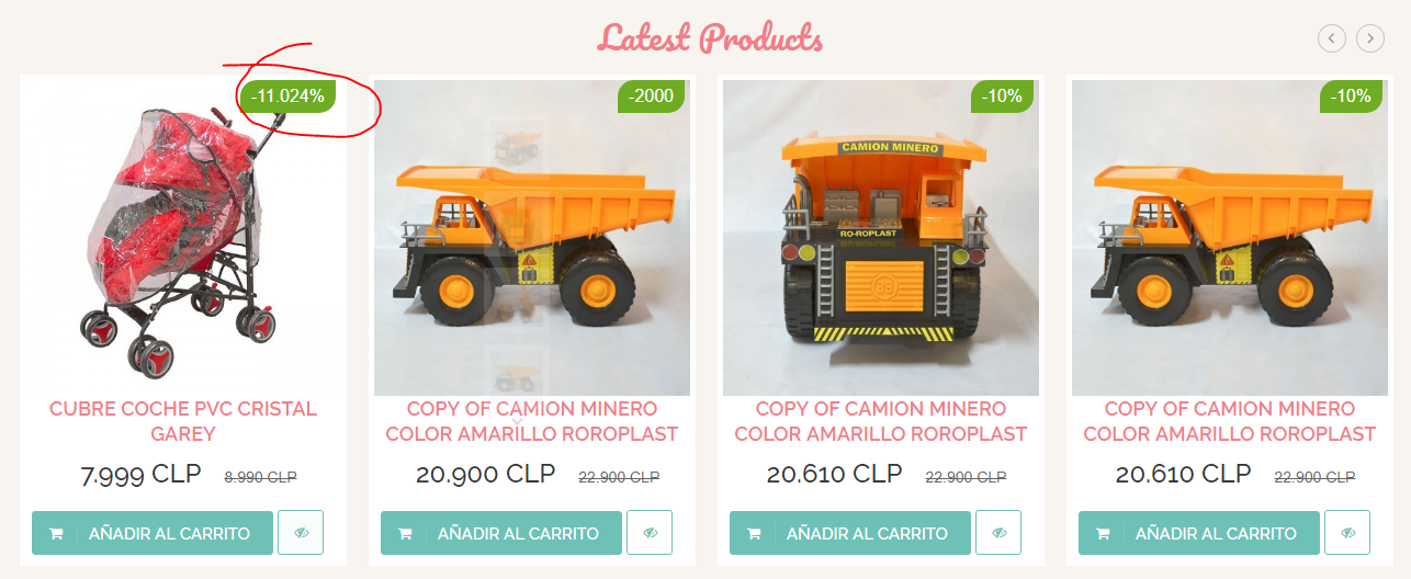 misaelGonzalez Posted April 26, 2019 Share Posted April 26, 2019 Gracias por la respuesta y resulta perfecto eliminar decimales del precio del producto💪PERO PREGUNTA Como podré eliminar los decimales de la cucarda de "descuento" Adjunto imagen Ahora se ve un 11,024% y la idea sería que no mostrara el " ,024 " Quien me puede ayudar con esto??. MUCHAS GRACIAS Link to comment Share on other sites More sharing options...