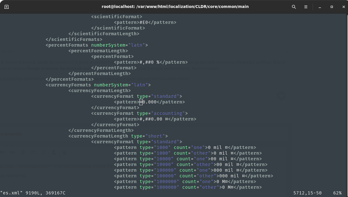 sebasxbox360 Posted March 26, 2018 Share Posted March 26, 2018 On 28/9/2017 at 8:43 PM, eltemucano said: Esto es un bug de esta nueva versión de Prestashop y acá te indicaremos los pasos para poder ver los precios sin decimales o con números enteros. 1. Accede a tu FTP o usa cPanel al Administrador de Archivos de tu cuenta. 2. Ve al directorio public_html/translations/cldr 3. Abre el archivo main--es-ES--numbers 4. Busca "currencyFormats-numberSystem-latn". 5. Hacia adelante de lo encontrado en el punto 4 busca la palabra "accounting" y modifica su valor. Debes ver algo como esto: "accounting":"#,##0.00\u00a0\u00a4" Y debes dejarlo así: "accounting":"#,##0\u00a0\u00a4" 6. Sigue hacia adelante y busca la palabra "standar". Debes ver algo como esto: "standard":"#,##0.00\u00a0\u00a4" Y debes dejarlo así: "standard":"#,##0\u00a0\u00a4" Si te fijas, en los punto 5 y 6 quitamos .00 del valor, que corresponde a 2 decimales. Espero les sirva.. Saludos!! Eres un crack!! me funcionó. Muchas gracias. Lo único que me queda faltando es que este código me movió el signo "$" a la derecha del precio. Cómo lo pongo a en el lado izquierdo? Dejo captura de pantalla Quedo atento a cualquier respuesta. Link to comment Share on other sites More sharing options...